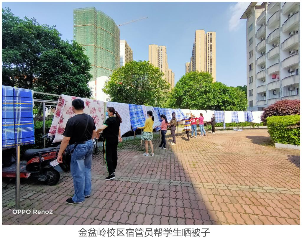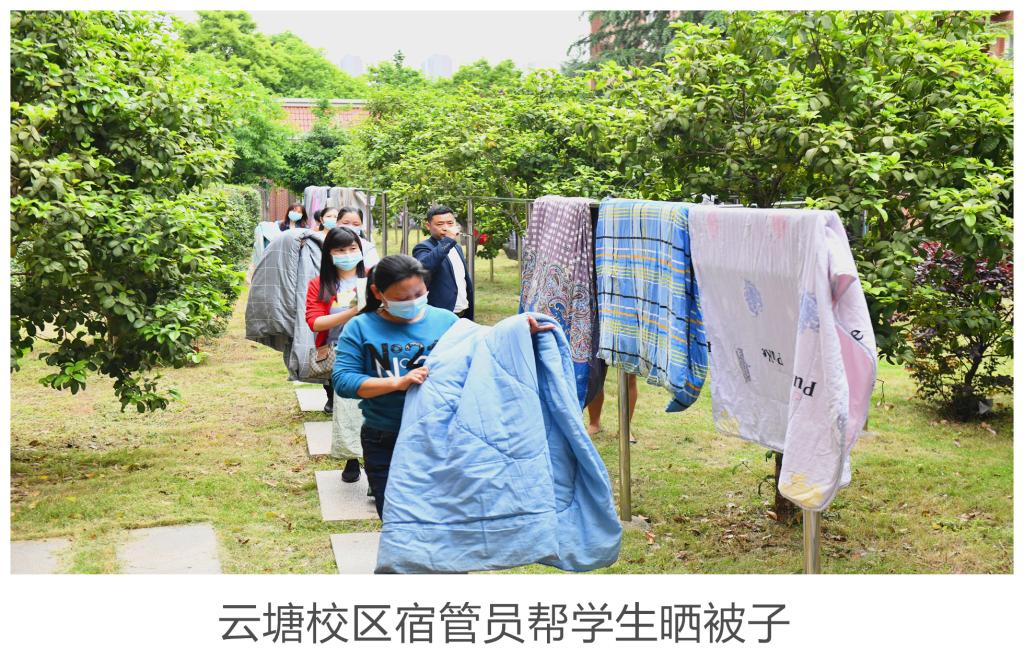 细致入微,被子贴标签。考虑到有学生可能介意自己的私人物品未经同意被触碰,宿管员纷纷提前联系辅导员老师,在征询学生本人同意后,由低到高分楼层分批次晾晒被子。细心的宿管员们做好自身消毒后,戴上口罩,给每床被子贴上宿舍号、床位号等标签,以防被子错拿。
