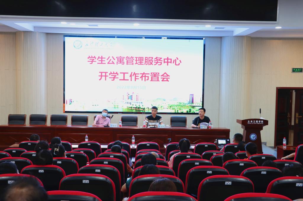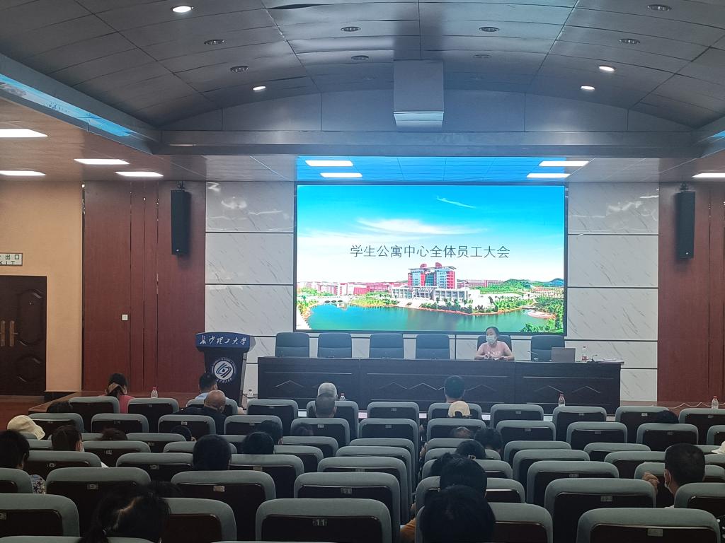 8月15日下午15:00,公寓中心组织全体员工,通过线上线下相结合方式,同步在云塘校区工科二号楼B302、金盆岭校区四教多功能报告厅召开了全体员工大会暨开学工作布置会,学工部(处)副部长王煜坤出席,会议由汪伦主持,全体员工参加。