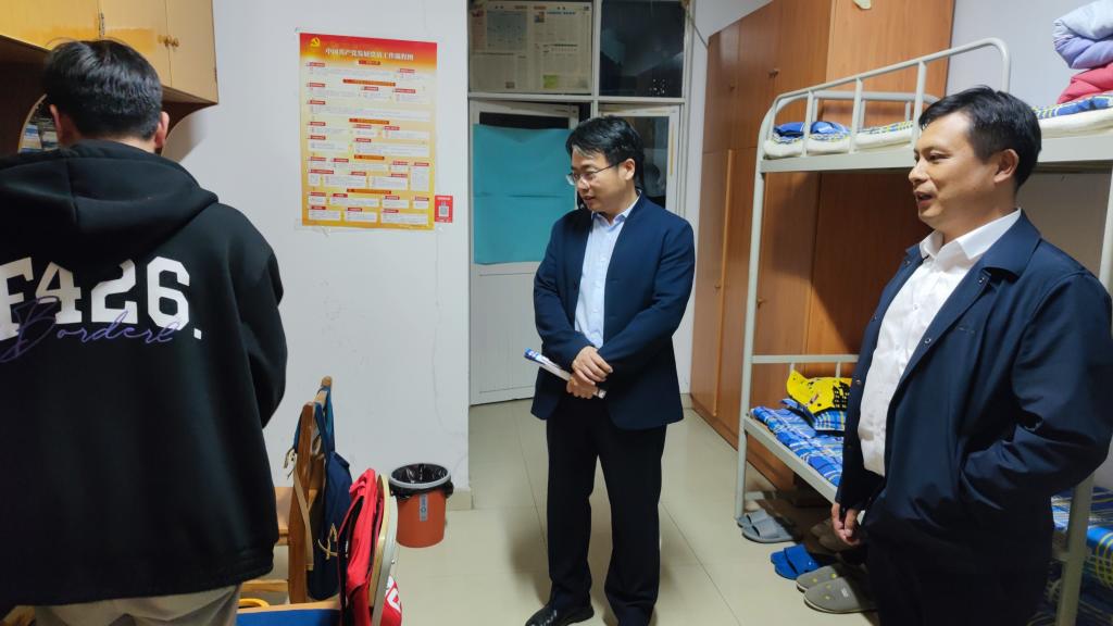 钱国平一行先后深入云塘校区敏行轩、弘毅轩宿舍园区,金盆岭校区西苑、东苑宿舍园区,进行现场检查指导,重点检查了学生宿舍区重点防火部位、消防器材、宿舍用电安全、公寓楼栋周边安全隐患及宿舍区防疫安全等。