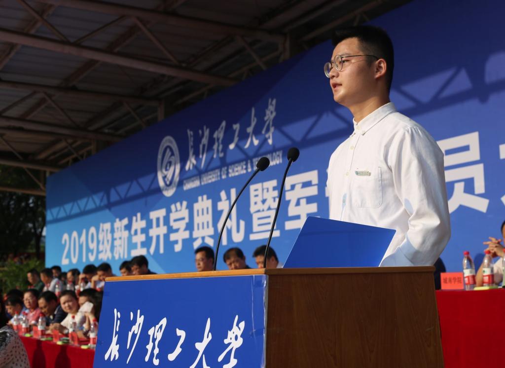 新生代表、土木工程学院张宇翔同学表示将恪守“博学、力行、守正、拓新”的校训,践行“脚踏实地、艰苦奋斗、乐于奉献、锐意进取”的“铺路石”精神,在学中求变,在进中求新,努力成为求知路上的探索者和创新者。
