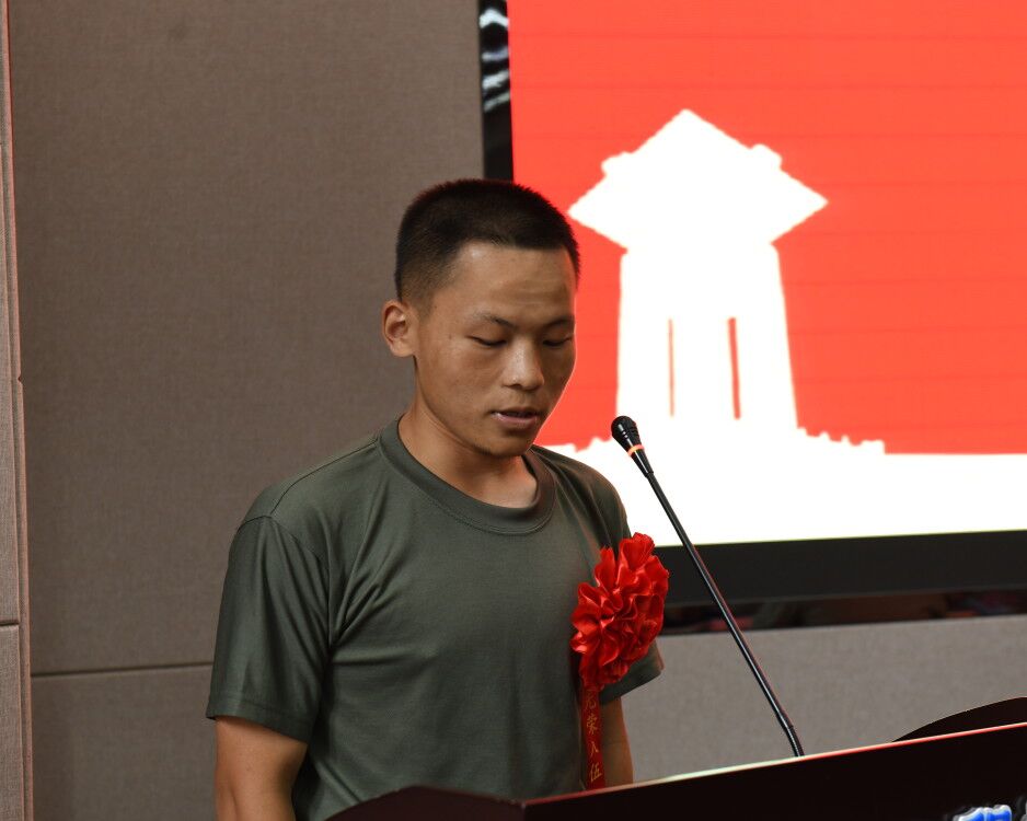 来自伟德经管学院的邓昌辉同学作为入伍学生代表在会上发言,他代表全体新入伍学生感谢学校的培养、老师的辛苦付出,并向学校和老师们保证,到部队后一定努力学习,刻苦训练,尽快从一名普通地方大学生成长为一名合格的军人,为国家和平与安宁扛好枪,站好岗,为保卫祖国贡献力量。