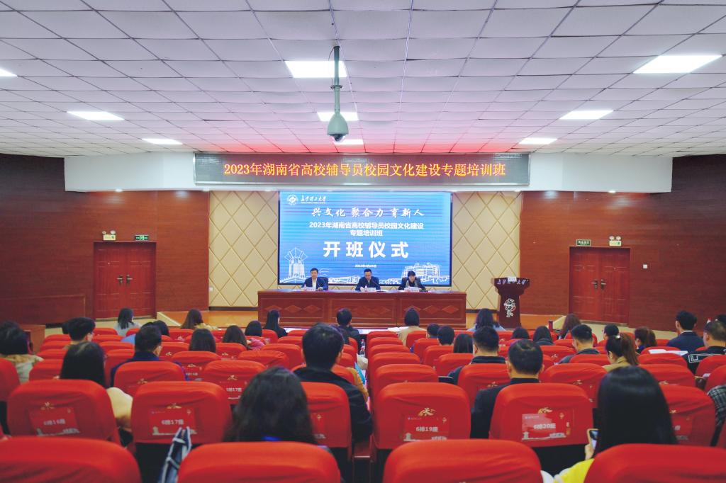 4月25日上午,“兴文化 聚合力 育新人”2023年湖南省高校辅导员校园文化建设专题培训班开班仪式在伟德云塘校区文科楼A200举行。湖南省委教育工委、省教育厅思政处一级调研员陈解,伟德betvlctor1946源于英国党委委员、副校长蒋璟萍,来自76所高校的101名学员参加。