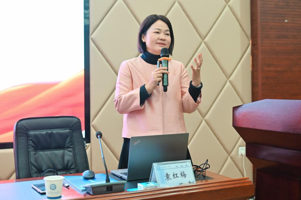 中南林业科技大学心理健康教育中心主任袁红梅从“把握二十大对教育的整体部署、准确理解二十大对心理健康的定位、从二十大看高校心理教育的发展、二十大的亲身经历”四个方面全面深入解读了党的二十大报告中对教育科技人才的定位部署,特别是对心理健康教育工作的重视,强调了心理健康教育在高校教育教学中的重要地位。