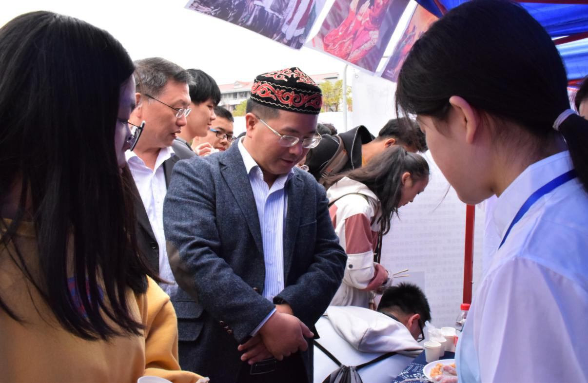 今年的民族文化节还展示了民族学子抗击新冠肺炎疫情的先进事迹,将民族优秀传统文化与社会主义先进文化融为一体。在维吾尔族学生古丽祖拉莱协助社区人员清扫单元楼、哈萨克族学生贾依仓协助测体温、蒙古族学生崔璐深入居民小区协助防控宣传等事迹的展板前,同学们驻足流连、纷纷称赞。