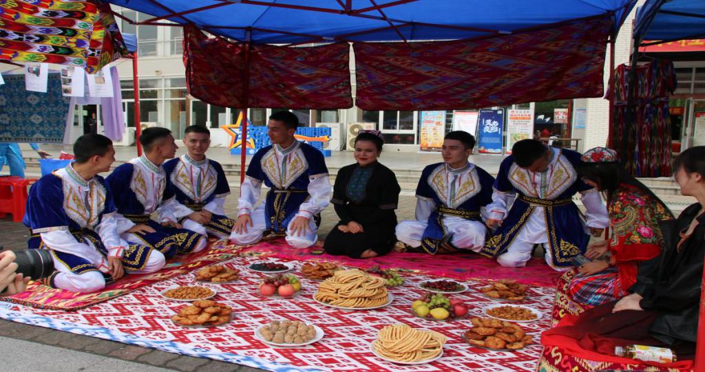 今年的民族文化节以“弘中国风,扬民族韵”为主题,展示了汉族、维吾尔族、哈萨克族、蒙古族、回族等民族文化。在各民族帐篷前,瑶族和土家族镶嵌着精美刺绣的服饰令人惊叹,侗族的特色卷饼、蒙古族的牛肉干、哈萨克族的塔米尔、维吾尔的烤全羊、藏族的青稞酒等特色美食令人垂涎。