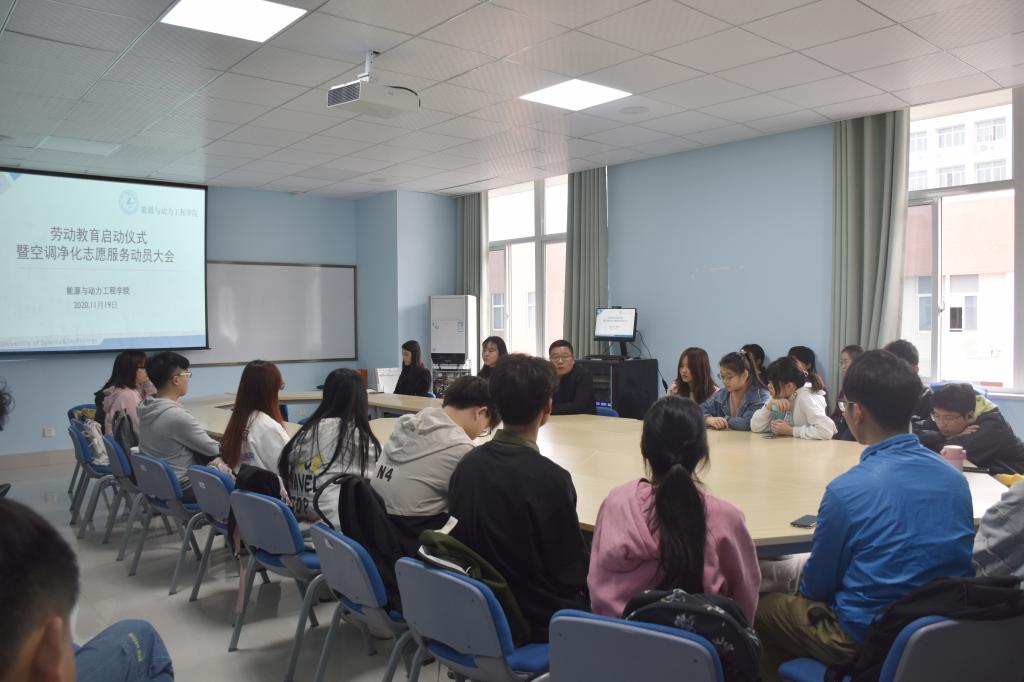 11月19日下午13时,能源与动力工程学院于新能源大楼2栋503启动了首期专业特色劳动教育实践活动。此次活动依托学院建筑环境与能源应用工程专业和节能减排协会,由能源与动力工程学院党委副书记、副院长靳攀科指导带队,学工办老师罗亦欧、李文豪、代佳欣、冯译萱组织43名志愿者参与,为全校师生提供空调新风和维护保养志愿服务。
