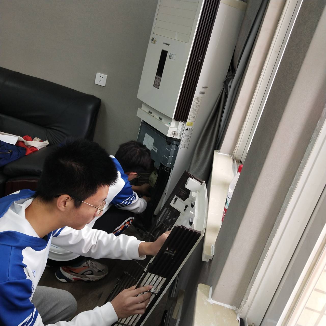 首期活动一共分为四组,为伟德学生工作部(处)、招生就业处、校团委、经济与管理学院、能源与动力工程学院等部门提供空调清洁保养服务。同学们统一工作着装,提前准备了空调专用清洁杀菌剂、专用清扫棉及其他工具。过程中,首先认真细致检查空调运行状态,断电确保安全后,清洁空调过滤网,清扫保养风机等空调部件,为洁净空气、提升工作环境质量贡献自己的力量。
