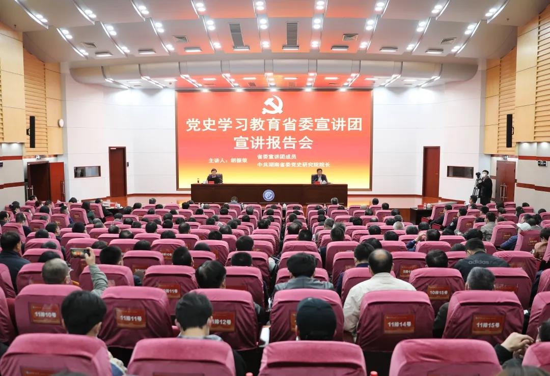 宣讲报告会上,胡振荣围绕“深入学习领会习近平总书记关于党的历史的重要论述,切实增强开展党史学习教育的政治自觉和行动自觉”“认真研读党史基本著作,全面了解中国共产党百年奋斗的光辉历程和历史贡献”“深刻把握党史学习教育的重点要点,不断从党的光辉历史中汲取砥砺奋进的智慧和力量”“把百年党史与湖南巨变联系起来把握,深刻感悟百年党史湖南篇章的作为与担当”四个方面,通过一个个经典故事和党史案例,深刻阐释了开展党史学习教育的重大意义、主要内容和重点任务等,系统解读了党史学习教育“为什么学”“学什么”“怎么学”等问题。