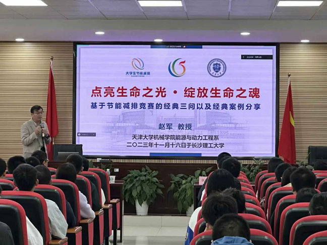 本次活动主要由天津大学赵军教授主讲,主题为“基于节能减排竞赛的经典三问以及经典案例分享”,赵军教授首先从哲学三问引入到竞赛三问:竞赛概况、竞赛历程、竞赛未来,从竞赛主题、赛制赛程、会旗标志等方面阐述了节能减排竞赛的基本概况与举办意义。同时,赵军教授以历届节能减排竞赛的主办学校、作品数量和影响力度等内容为切入点,带领同学们了解了节能减排竞赛的四个出发点、“主动实践,竞争创新”的精髓以及未来展望。他指出,竞赛应紧盯国家重大需求与科技前沿,探索释放育人潜能新途径;竞赛精神引领竞赛体系建设及创新型人才培养,推动学科发展,师生要关注作品价值,共同打造“五位一体”交融育人的实践创新乐园;竞赛能强化学生的节能减排意识和创新能力素养,使各学科之间、专业技能与国家大事形成有效交流、有效连接和有效执行。随后,同学们积极踊跃提出自己在竞赛方面的困惑,赵军教授都一一耐心解答,同学们表示受益匪浅,收获满满。