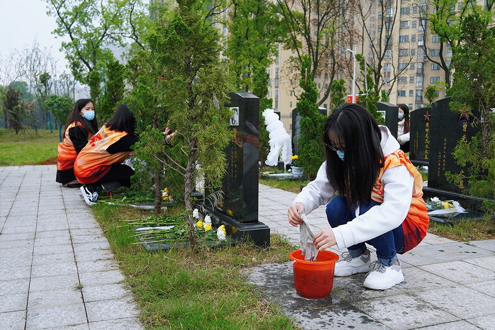 伟大理想,永志不忘,铭记先烈遗愿,信念之光不灭,理想之光不灭。各学院还组织师生党员共同召开“追思和学习英烈事迹”座谈会,广大学生通过“网络祭扫”等方式为英烈举行献花仪式并通过“纪念文章”或“留言”端口,撰写短书信向英烈寄托哀思,各类自媒体接力宣传转发,掀起“祭英烈、学英雄”的热潮。“英烈的功勋彪炳史册、精神烛照未来的丰碑”“清澈的爱,只为中国”“一腔热血勤珍重,洒去犹能化碧涛”……一文一字间,先烈的英雄事迹跃然纸上,伟大的理想信念和不朽的精神品质令人动容。水利工程学院罗威同学写到,“中华民族之所以历经磨难而不倒,正是因为有了一代代英雄传承下来的精神支柱。他们的大无畏精神与韧劲,是需要我们传承和发扬的;他们英勇牺牲的事迹,是需要我们缅怀和铭记的。”