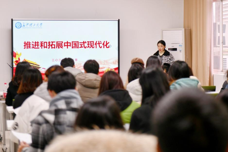 领学老师程静征、研究生宣讲成员付圣莹、张卉洁分别以《以人类之名,筑共同之梦》《推进和拓展中国式现代化》《不断实现人民对美好生活的向往》为题进行微宣讲现场展示。各位宣讲成员结合自身宣讲经验,围绕找好切入口、讲准讲活讲信、创新宣讲方法等方面进行了热烈交流。