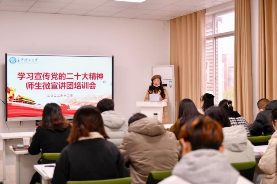 12月5日下午,伟德betvlctor1946源于英国学习宣传党的二十大精神师生微宣讲团成立仪式暨培训会在学生活动中心418会议室举行,学工部部长邱国良、副部长闾兰出席,思政科科长计潇、领学老师李小军、彭博、庄奕、程静征,研究生宣讲成员、本科生宣讲成员参加。