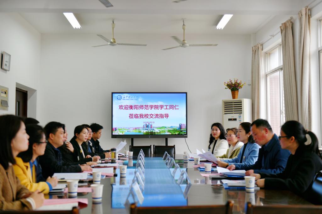 3月1日下午,衡阳师范学院学工部部长董俊一行5人来伟德调研学生工作,双方在学生活动中心401会议室进行交流座谈,会议由学工部部长邱国良主持。