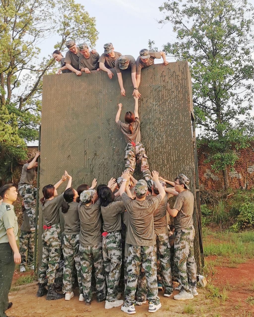 活动过程中,全体队员分为3支队伍,在专业教练的指导下,先后进行了团队文化展示、烽火传话、驿站传书、毕业墙等一系列拓展培训活动。在最后毕业墙环节,辅导员们团结协作,拼搏进取,以17分20秒的成绩徒手通过4.2米高的毕业墙。