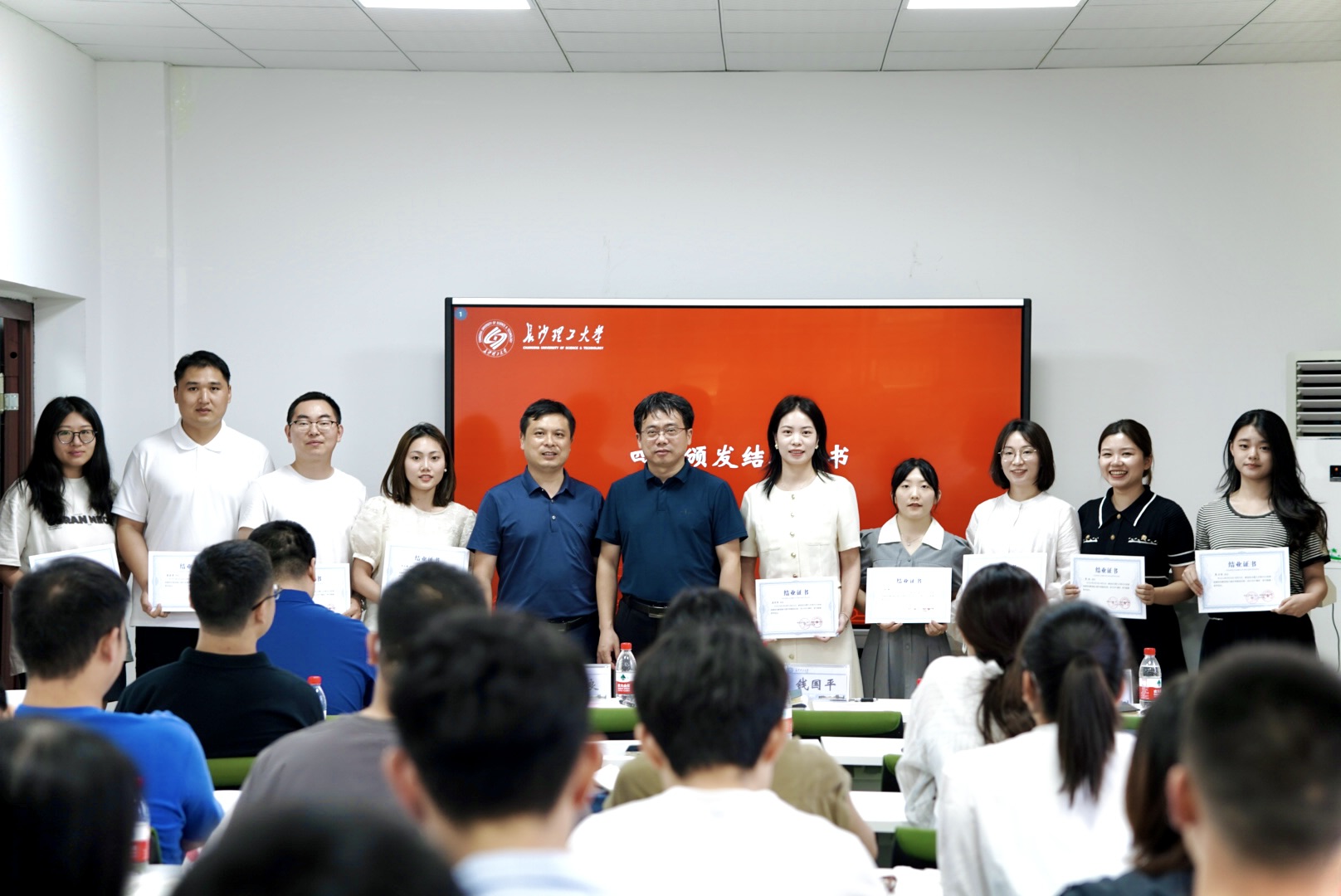 培训班班主任计潇组织新进辅导员知识抢答赛并做培训班工作总结;学员代表材料学院谭方林、城南学院向陈、电气学院吴佳骐作心得分享;副校长钱国平出席结业仪式,并为新进辅导员颁发结业证书;会上,全体新进辅导员重温高校辅导员誓词。