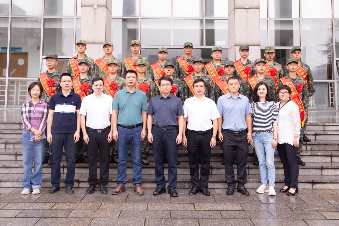 入伍新兵苏有诚作为学生代表发言,他表示:“国无防不立、民无兵不安。我将以“博学、力行、守正、拓新”的八字校训作为箴言,在军旅之路上努力拼搏,为校争荣!”