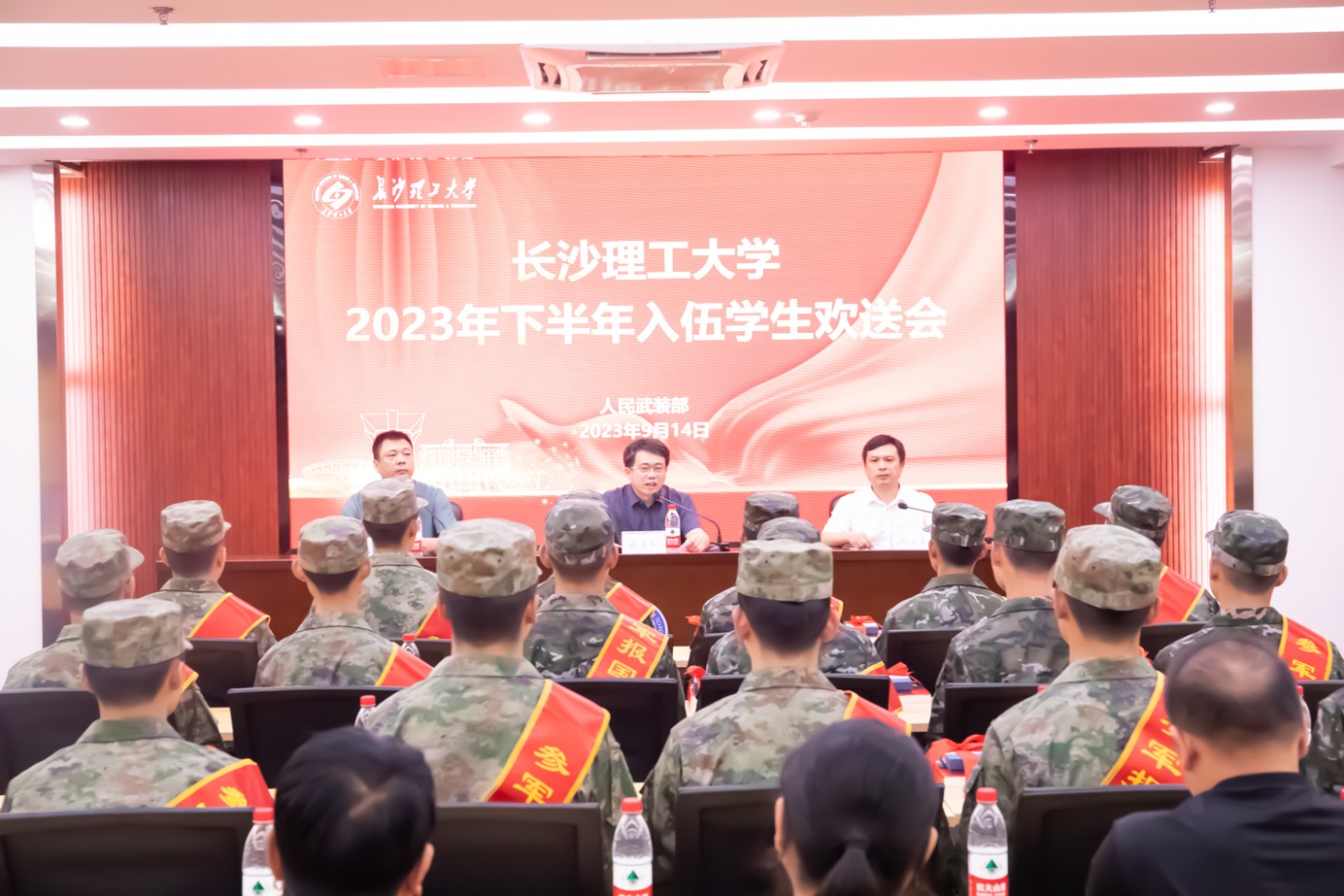 会上,邱国良宣读2023年下半年应征入伍学生名单,并对入伍新兵提出寄语,希望新兵们到部队后尽快适应军营生活,持续发扬“底色亮、实践强、有情怀、敢担当”的长理特质,早日完成从大学生到合格军人的转变,争取在部队立新功、创大业。