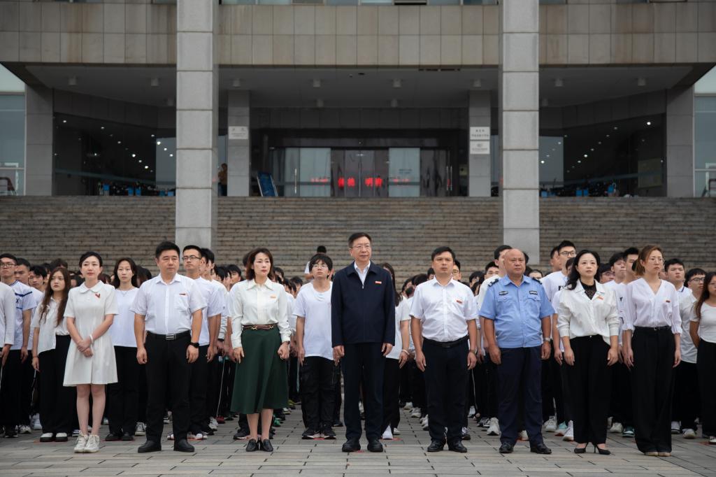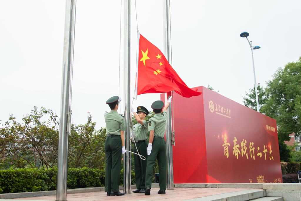 清晨7点,迎着朝阳,国旗班队员们迈着铿锵有力的步伐护送五星红旗走向国旗台。在场师生高唱国歌,向冉冉升起的五星红旗行注目礼。升旗完毕后,全体肃立默哀,向人民英雄致敬,寄托对英烈的哀思和缅怀之情。
