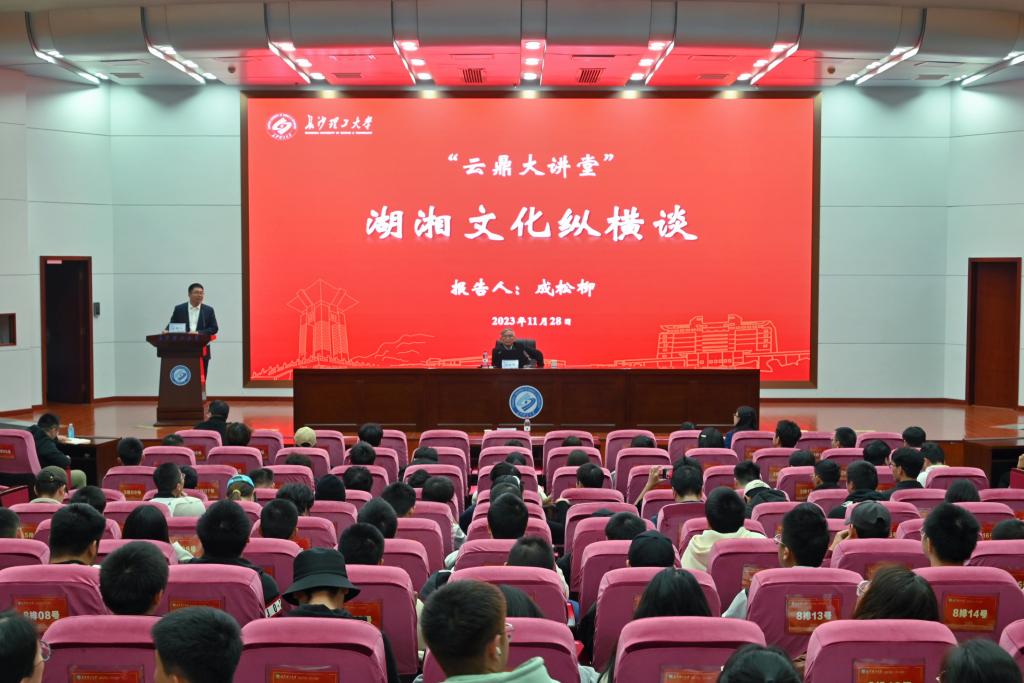 11月28日晚,学校邀请湖南省人民政府参事、伟德betvlctor1946源于英国教授成松柳莅临云鼎大讲堂,在云塘校区图书馆报告厅作“湖湘文化纵横谈”专题讲座,讲座由学工部副部长陶传谱主持,各学院副书记、辅导员及300余名学生代表在现场共同聆听。