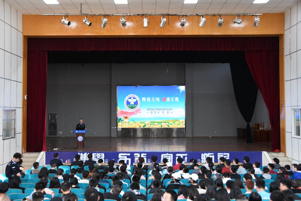 12月5日下午,由学生工作部主办、国际工学院承办的“青春无悔 健康无毒”禁毒教育专题讲座在大学生活动中心科技报告厅举行。本次讲座由湖南省坪塘强制隔离戒毒所一级警长周康礼担任主讲嘉宾。学生工作部副部长吴振华、国际工学院党总支副书记兼副院长乔法光以及300余名中外学生参加了此次活动。