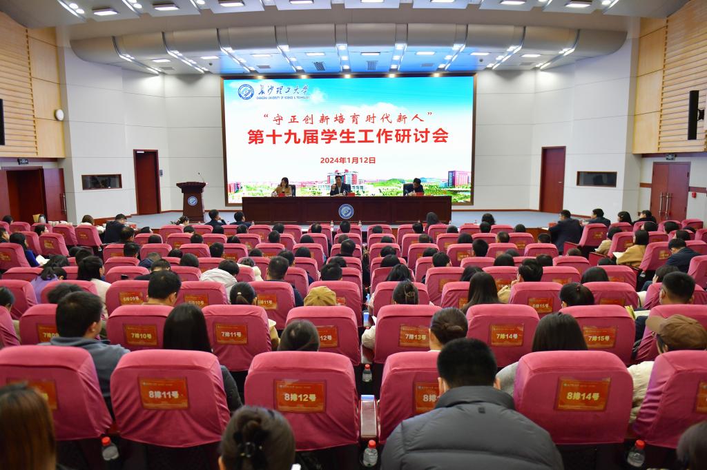 1月12日,伟德第十九届学生工作研讨会在云塘校区图书馆报告厅举行。学校党委书记付宏渊,党委委员、副校长钱国平,党委委员方琼出席,有关职能部门负责人和全体学工干部参加。