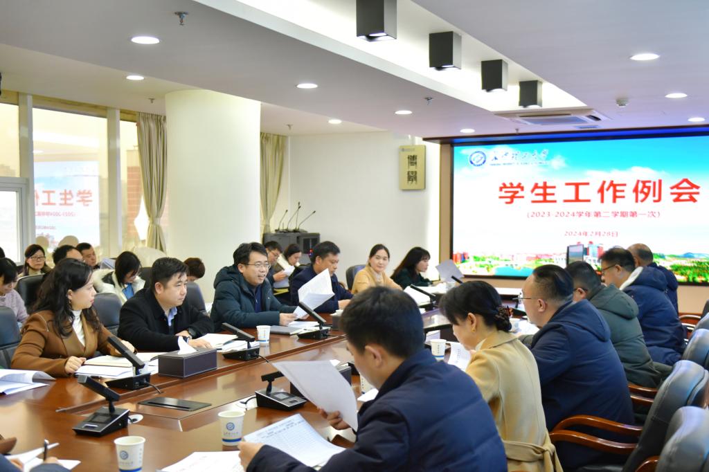 2月28日下午,副校长钱国平在一办公楼六会议室主持召开2023-2024学年第二学期第一次学生工作例会,学校相关职能部门及各学院学生工作负责人参加会议。