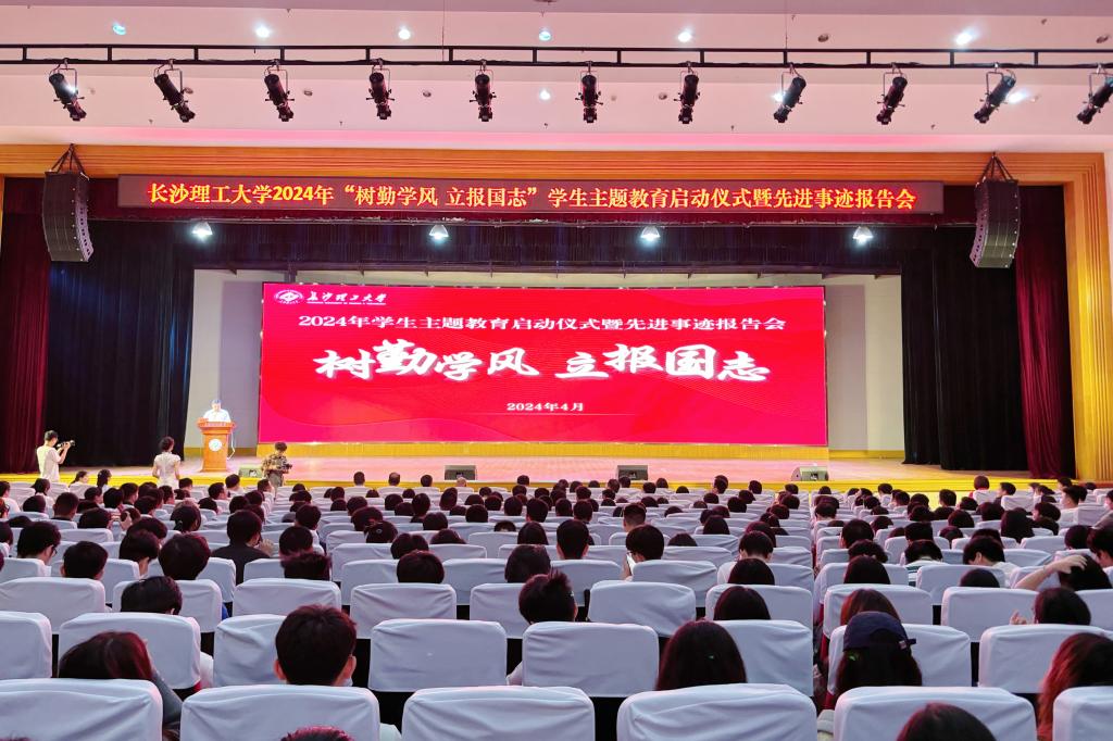 4月24日晚,学校2024年“树勤学风 立报国志”学生主题教育启动仪式暨先进事迹报告会在金盆岭校区五教大礼堂举行。副校长钱国平,相关部门负责人,各学院学生工作负责人、辅导员和学生代表参加了启动仪式。大会由学工部部长邱国良主持。