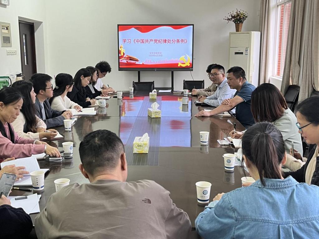4月30日上午,学工部党支部在401会议室组织全体党员深入学习《中国共产党纪律处分条例》。