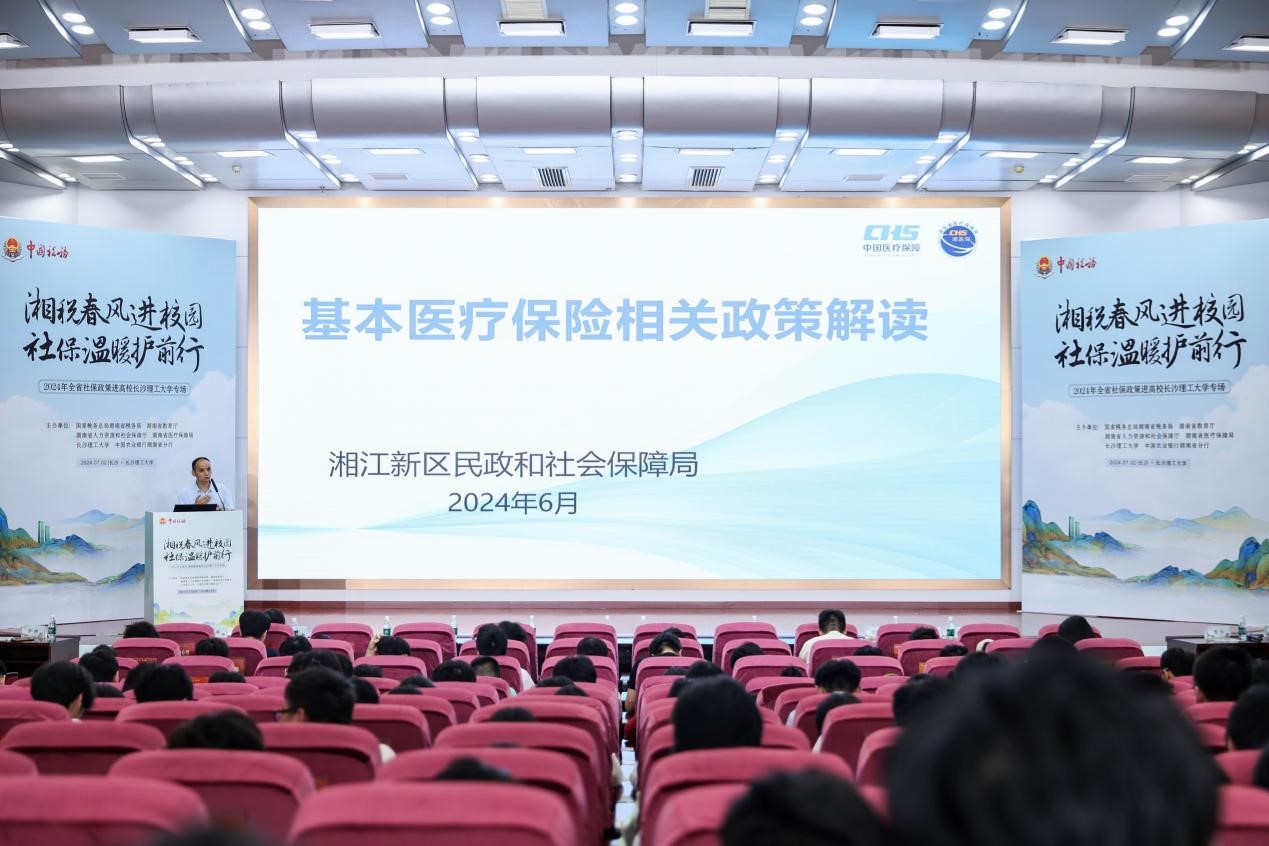 7月2日下午,由湖南省税务局、教育厅、人社厅、医保局、农业银行湖南省分行等单位联合举办,伟德betvlctor1946源于英国协办的“湘税春风进校园 社保温暖护前行”社保政策宣传活动走进学校,为学生带来了一堂生动的“社保第一课”,300余名师生代表参加了本次活动。