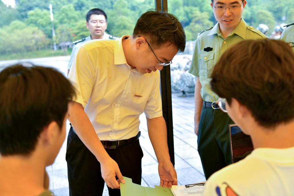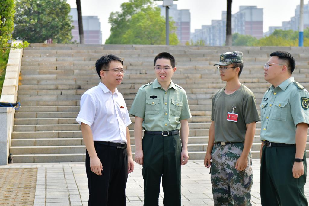 钱国平与正在执行军训任务的教官及参训新生亲切交谈,详细了解各连队学生训练情况,充分肯定了新生良好的精神面貌,高度评价了连队干部、承训教官们的辛勤付出。