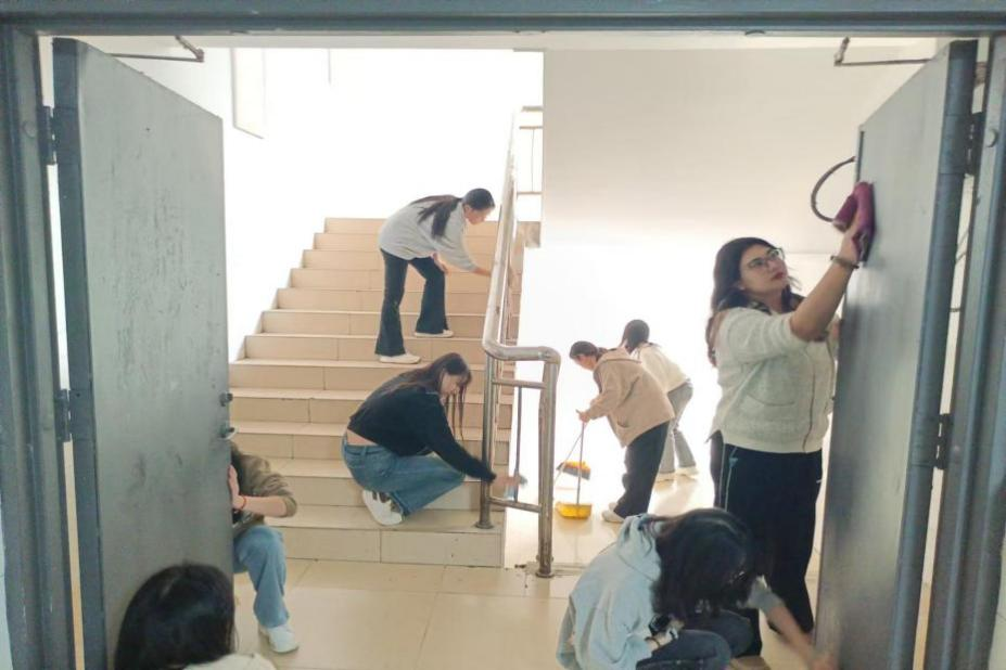 经过精心组织策划,本次活动主要是对金盆岭校区东苑、南苑、西苑学生宿舍区域的楼栋外围和每层楼公共区域进行清扫工作。同学们按照分组提前准备必要的劳动工具,并准时到达各自负责的清扫区域。在责任区范围内,同学们分工明确、各司其职,以饱满的热情投入到劳动实践中。他们认真清除宿舍楼栋周围的杂草和白色垃圾,擦洗楼梯扶手和走道门窗,铲除宿舍门上的牛皮癣等,发扬不怕脏、不怕累的奉献精神,不放过每一处细小的角落,高效率完成了此次清扫劳动教育实践活动,为同学们营造了更加整洁舒适的学习和生活空间环境。