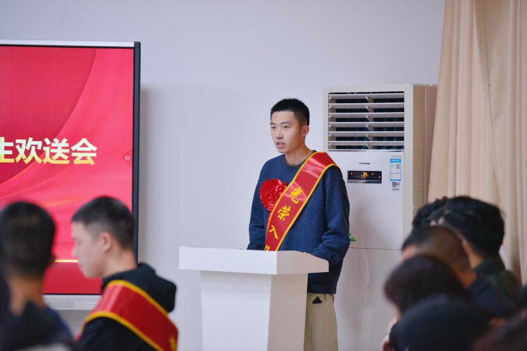 会上,国际工学院文梓涵同学代表入伍学生发言。他承诺将时刻牢记家人和学校的嘱托,不断磨砺意志,提升军事技能,努力成为一名政治合格、军事过硬、作风优良的新时代军人。方琼为入伍学生赠送了纪念品,并合影留念。