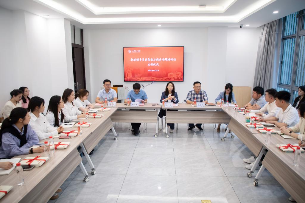 4月23日下午,学校在“三全育人”教育基地举行2025年新进辅导员素质能力提升专题培训班启动仪式,学校党委副书记方琼与近两年新进辅导员亲切座谈,座谈由学工部部长王学成主持。