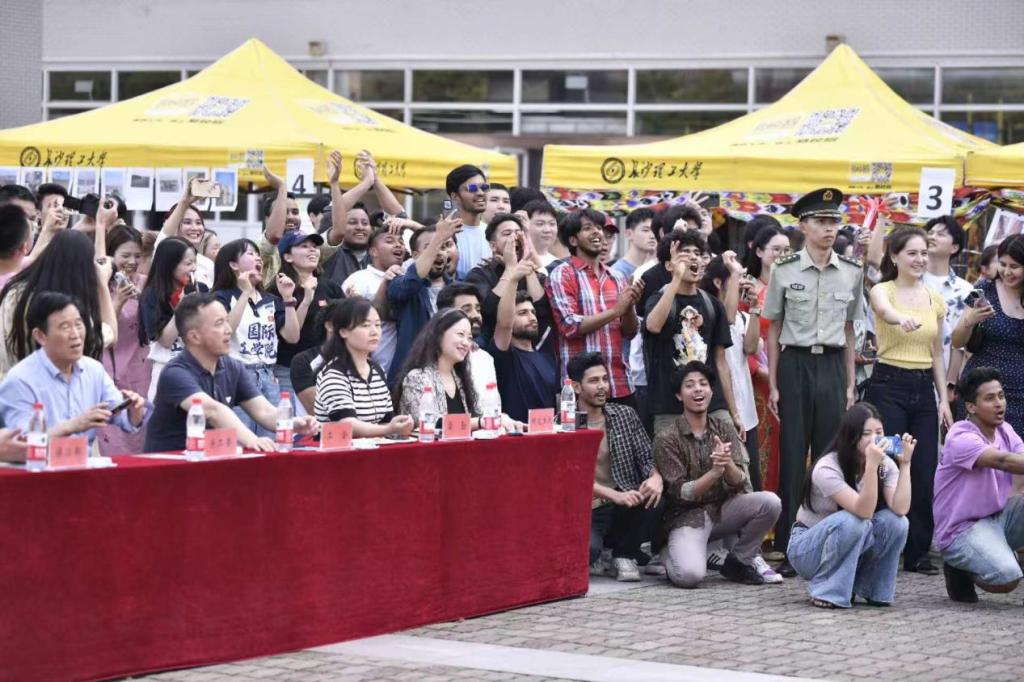 来自不同国家、民族的学生以歌舞、乐团、舞狮表演等形式带来了“民族风采・古韵开篇”“民族情怀・奋进旋律”“民族团结・灵魂追梦”三个篇章的表演,营造了美美与共的热烈氛围。民族文化村中不但有汉族、土家族、回族、维吾尔族等民族专区,还增设国际展位,展示不同国家和民族服饰、传统工艺品、乐器等。学生次仁卓嘎感慨地分享道:“很高兴能向大家分享民族的文化,看到大家纷纷‘打卡’,我感到很自豪。希望各民族文化如璀璨星辰,在交流交融中永恒闪耀!”