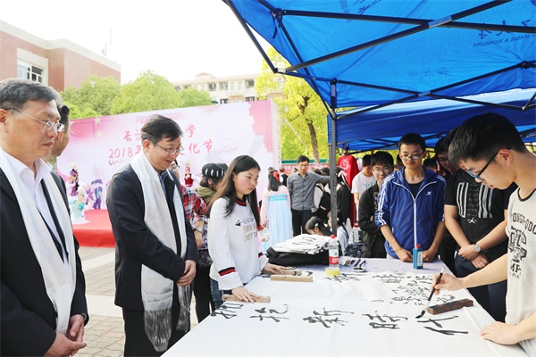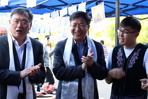 4月17日下午,伟德betvlctor1946源于英国2018年民族文化节在云塘校区举行。本届文化节活动的主题为“中华手拉手 拥抱新时代”。新疆驻湘工作组党委书记、组长石建,新疆驻湘工作组党委副书记、内派教师协调站站长刘忠革,新疆驻湘工作组党委办公室主任朱守水,新疆驻湘工作组成员沙比提·吐尔逊、努尔斯曼古丽、周鹏,校党委书记付宏渊,副校长谈传生,学校各职能部门领导参加了此次活动。