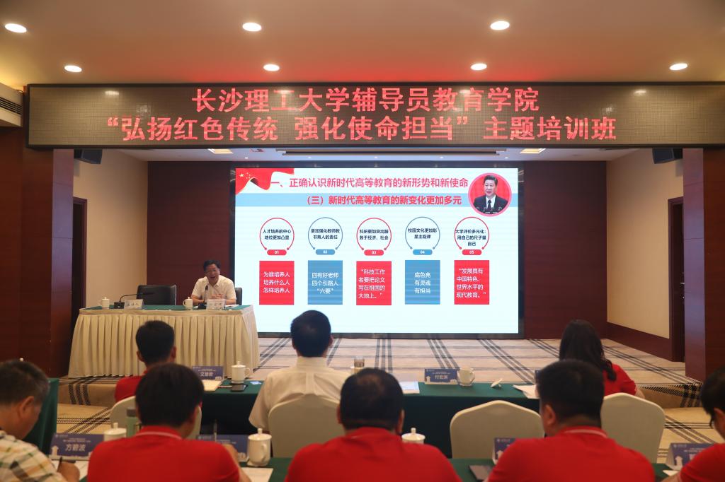 7月17日下午,校党委书记付宏渊以《强化使命和担当,汇聚起培育时代新人的磅礴力量》为题给全体辅导员作专题报告。报告会在韶山德胜宾馆芙蓉厅举行。副校长谈传生、党政办主任周艳红,全体辅导员和学工系统科以上干部听取报告。