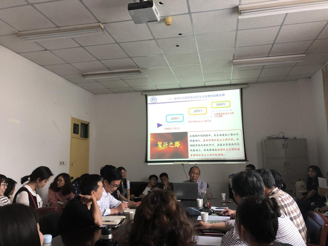 在讲座中,肖贵清教授结合党的十九大精神,谈到中国特色社会主义已经进入新时代,所取得的成就是全方位的、开创性的,带来的变革是深层次的、根本性的,十八大以来解决了许多长时间想解决而没有解决的难题,办成了许多过去想办而没有办成的事,如从严治党、反腐工作取得了巨大成就。同时,肖教授分析了社会主义初级阶段主要矛盾的转化,指出我国社会主要矛盾的表述强调的是社会发展的重要矛盾,不是经济领域的矛盾,社会主要矛盾的表述不是一个短期的概念,至少要管到本世纪中叶。另外,肖教授对习近平新时代中国特色社会主义思想进行了深入的分析。他讲到:坚持和发展什么样的中国特色社会主义是以习近平同志为核心的党中央在治国理政实践中所要回答的时代课题,习近平新时代中国特色社会主义思想是马克思主义中国化最新理论成果。最后,肖教授对全面建设社会主义现代化国家新征程进行了深刻的解读,他讲到,我国社会主义初级阶段大致分为三个发展阶段,第一阶段从社会主义制度基本建立到改革开放之前属于我国社会主义建设的起步阶段;第二阶段解决温饱问题到总体小康再到全面建设小康,最后实现全面小康是新时期建设小康社会阶段;第三阶段是2020—2050年前实现社会主义现代化的发展阶段,是社会生产力全面发展、实现共同富裕的阶段。