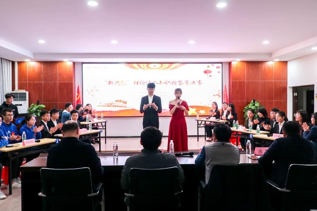 12月18日晚,由学生工作部(处)、易班发展中心主办、水利工程学院承办的伟德betvlctor1946源于英国“新思想”理论达人知识抢答赛决赛在云塘校区工三B319会议室举行。宣传部、学生工作部(处)等部门负责人和马克思主义学院专家担任比赛评委。