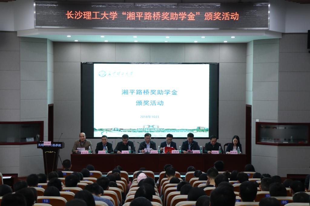 谈传生首先致辞,对设立奖助学金的湖南省湘平路桥建设有限公司表示诚挚感谢,并希望同学们志存高远、艰苦奋斗,不断提高专业水平,努力掌握为人民服务的过硬本领,将扶贫帮困、乐于助人的博爱事业接力传承、发扬光大。学工部长艾楚君宣读了受资助学生名单,与会领导为他们颁发了证书。交通运输工程学院解伟同学代表获得奖助学金的学生发言。校友谢建湘总经理介绍了设立奖助学金的初衷,鼓励同学们奋发图强,努力开创美好未来。