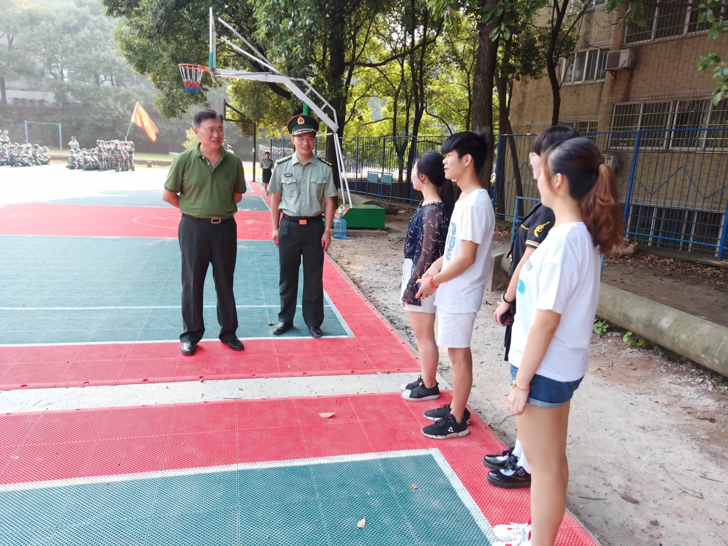 9月15日,2018级新生军训正在如火如荼的进行,副校长谈传生在学生工作部相关负责人陪同下来到军训场地,看望慰问军训教官及全体参训师生。