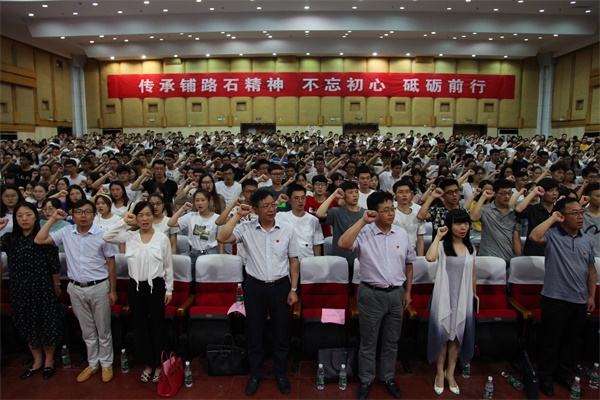 湖南省大学生百佳党员、计通学院本科生郑伟带领现场全体党员重温入党誓词,并代表全体毕业生党员庄重承诺要牢记党员的责任与使命,坚定“四个自信”,践行“八字箴言”,传承好铺路石精神,向党和人民、向母校交出最好的答卷。