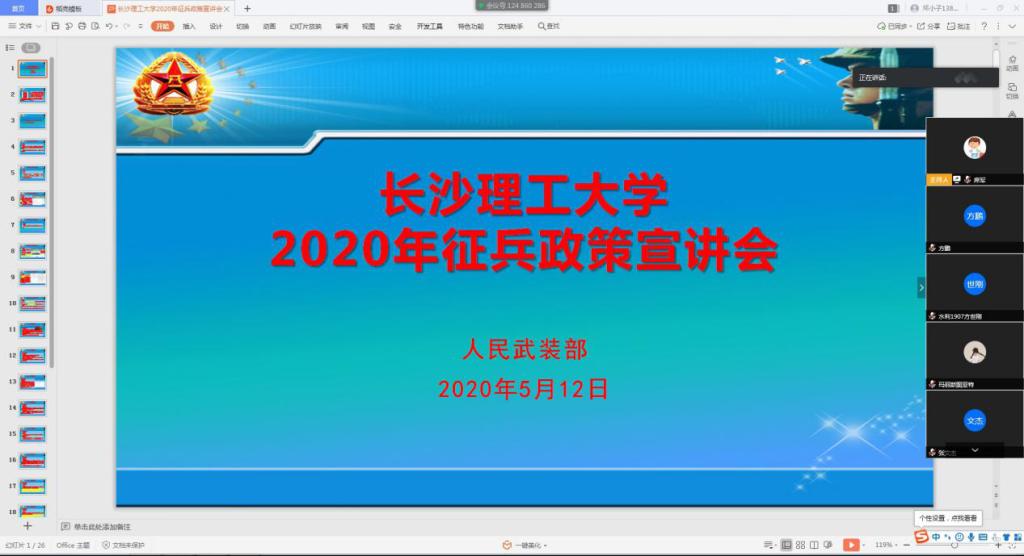 为进一步做好伟德2020年大学生征兵工作,让学生更好掌握征兵相关政策,学校人民武装部于5月12日下午以线上形式举办了2020年征兵政策宣讲会。学校250余名有参军入伍意向的学生参加了线上宣讲会。