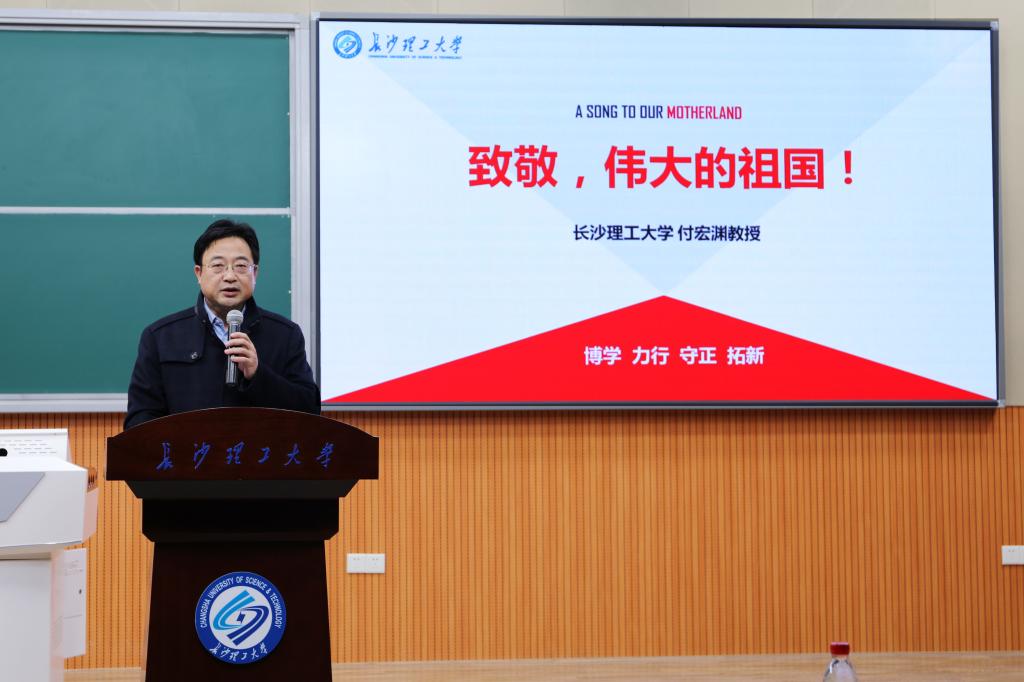 付宏渊书记首先分析了是“90后”“00后”青年挺身而出,筑起了青春长城;英雄的武汉人民大义凛然,封城护国;全国人民万众一心,迸发出的强大动员力和组织力,感动了中国,震撼了世界。随后,他结合疫情防控中美丽的“逆行者”、冲锋陷阵的医护人员、勇挑重担的人民子弟兵、昼夜不停的医院建设者、坚守岗位的党员干部、志愿服务的“00后”等感人事迹,指出中国力量源自深厚的家国情怀,中国力量源自中国共产党的坚强领导,中国力量源自中国特色社会主义制度的巨大优势。最后,在“我们以什么致敬伟大中国”的阐释中,付宏渊书记寄语广大青年学生:爱国是青春最伟大的力量,生命是青春最美的礼赞,责任是青春最亮丽的底色。
