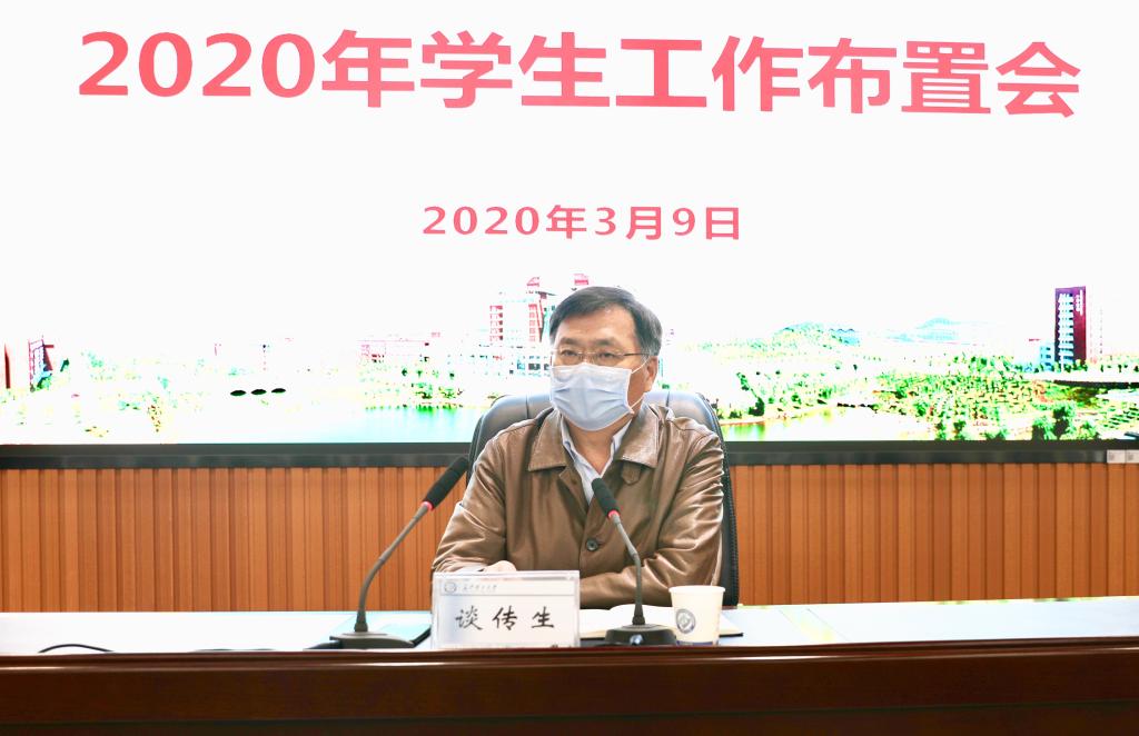 3月9日下午,副校长谈传生在一办九楼会议室主持召开2020年学生工作布置会。学工部(处)、招就处、团委、研究生院等相关职能部门负责人,各学院学生工作负责人参加会议。
