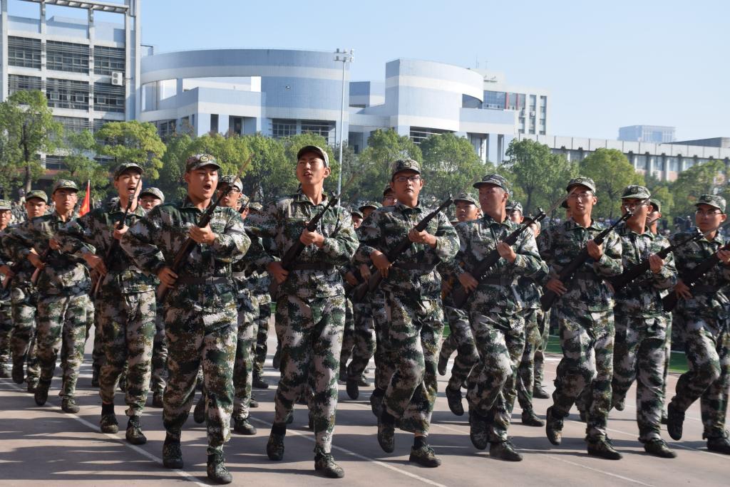 随后,分列式在阅兵进行曲中进行。17个学院的新生方队在指挥员的 指挥下依次通过主席台,他们精神饱满、步履铿锵,用威武军姿展现了长 理学子昂扬向上的精神风貌,为开学第一课交上了一份满意的答卷。