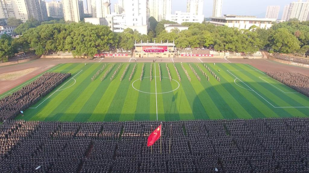 大会在庄严的升国旗、奏国歌仪式后拉开帷幕。2019级新生带来一场 激情洋溢的擒敌拳、匕首操和战术动作表演,凌厉有力、气势磅礴的演出 赢得阵阵掌声。
