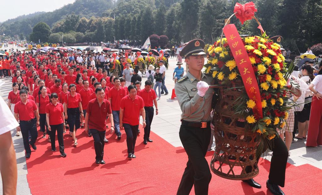 培训首日,全体参训人员在韶山毛主席铜像广场进行铜像瞻仰仪式。140余名辅导员身着统一红色衬衫,在党委书记付宏渊的带领下向铜像敬献花篮,表达崇敬与追思。献花礼毕,全体人员重温了入党誓词。下午,在德胜宾馆芙蓉厅举行伟德betvlctor1946源于英国2019年新聘辅导员入职仪式。校党委书记付宏渊、副校长谈传生为新聘辅导员授予并佩戴校徽。