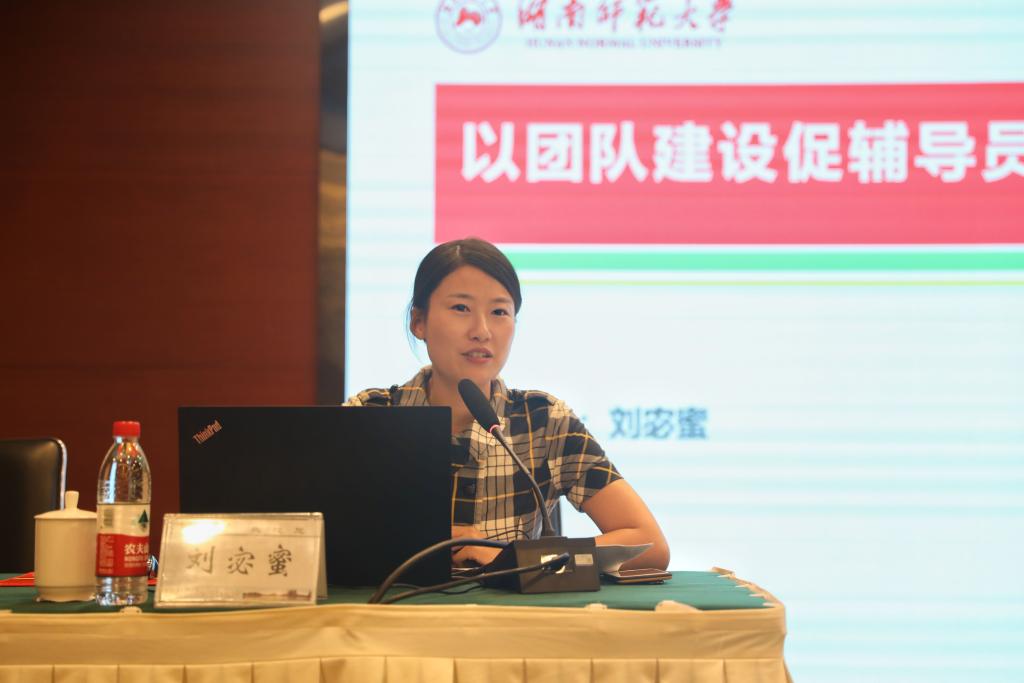 湖南省辅导员名师工作室负责人刘宓蜜介绍了“筑梦辅导员”团队建设,讲述了团队在提升辅导员思想政治理论水平、文字表达能力、口头表达能力、事务处理能力的实践与成效。