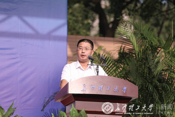 9月8日上午,2021级新生开学典礼暨军训动员大会在金盆岭校区田径场举行。6950名本科生和2790名研究生满怀憧憬,以蓬勃向上的姿态翻开人生征程中的崭新篇章。校党委书记付宏渊,校长曹一家,副校长刘建民、蒋璟萍、谈传生、刘朝晖,纪委书记徐桂林,党委委员、宣传部部长方琼,相关职能部门负责人、学院党政主要负责人、2021级新生辅导员,以及全体2021级新生参加了大会。大会由副校长钱国平主持。