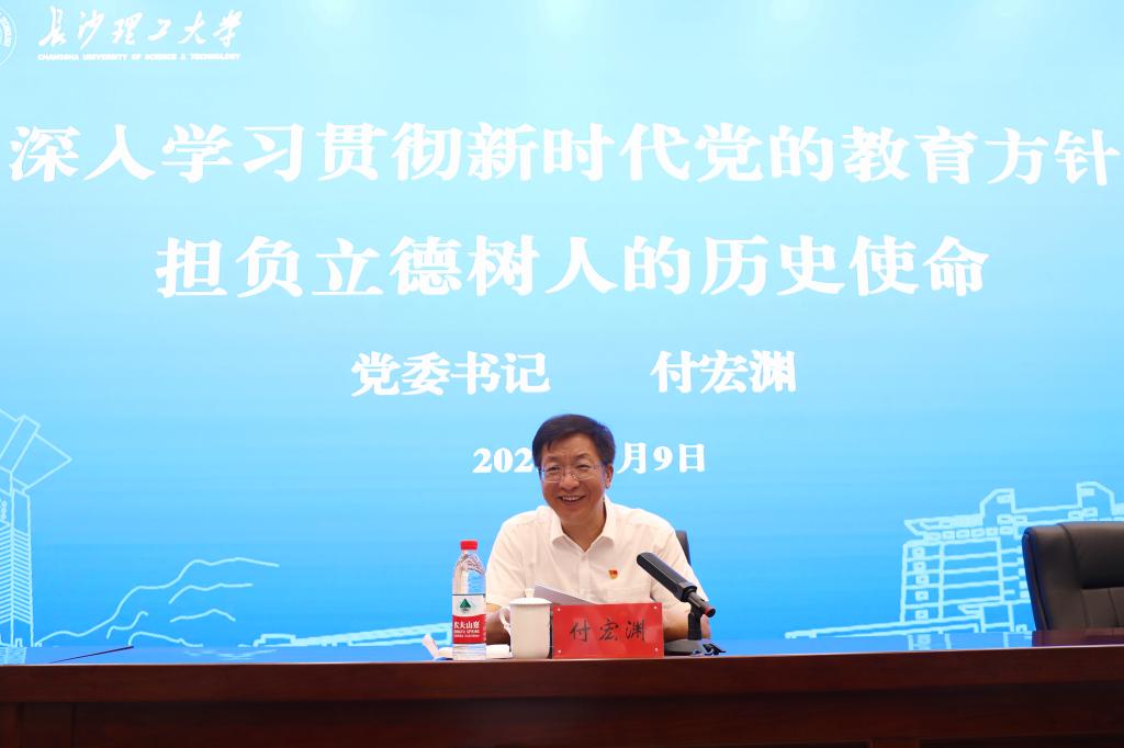 付宏渊指出,党的十八大以来,习近平总书记立足世界发展大势和国家发展全局,传承中华优秀传统教育思想,借鉴当今世界优秀教育成果,聚焦中国教育事业发展,提出了“九个坚持”“六个下功夫”“四为方针”等一系列关于高等教育发展的新理念新思想新观点。这些重要思想深刻阐明了新时期我国教育事业发展的重大理论与实践问题,系统回答了教育的方向性、根本性、战略性问题,形成了科学完整的理论体系。习近平关于教育的系列重要论述,是中国特色社会主义教育发展实践的最新理论成果,具有鲜明的时代特征,是新时代我国社会主义教育事业的总方向和根本方针,为办好新时代中国特色社会主义教育指明了方向、提供了根本遵循。
